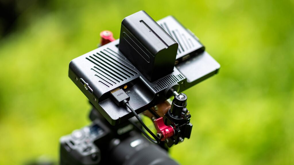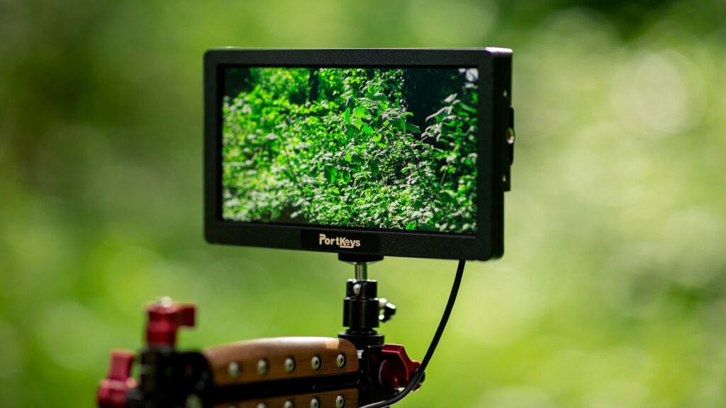 The Portkeys HD7H monitor features a 7” display with a resolution of 1280×720 that covers 75% of the Rec.709 color space and has a 1000:1 contrast ratio. With a maximum brightness of 1,000nits, these features give us a clue about the purpose of this monitor. We are not looking for a super precise monitoring scenario under bright sunlight and with details in mind. These features aim more at a standard production scenario where we need feedback about our shots in broad strokes.