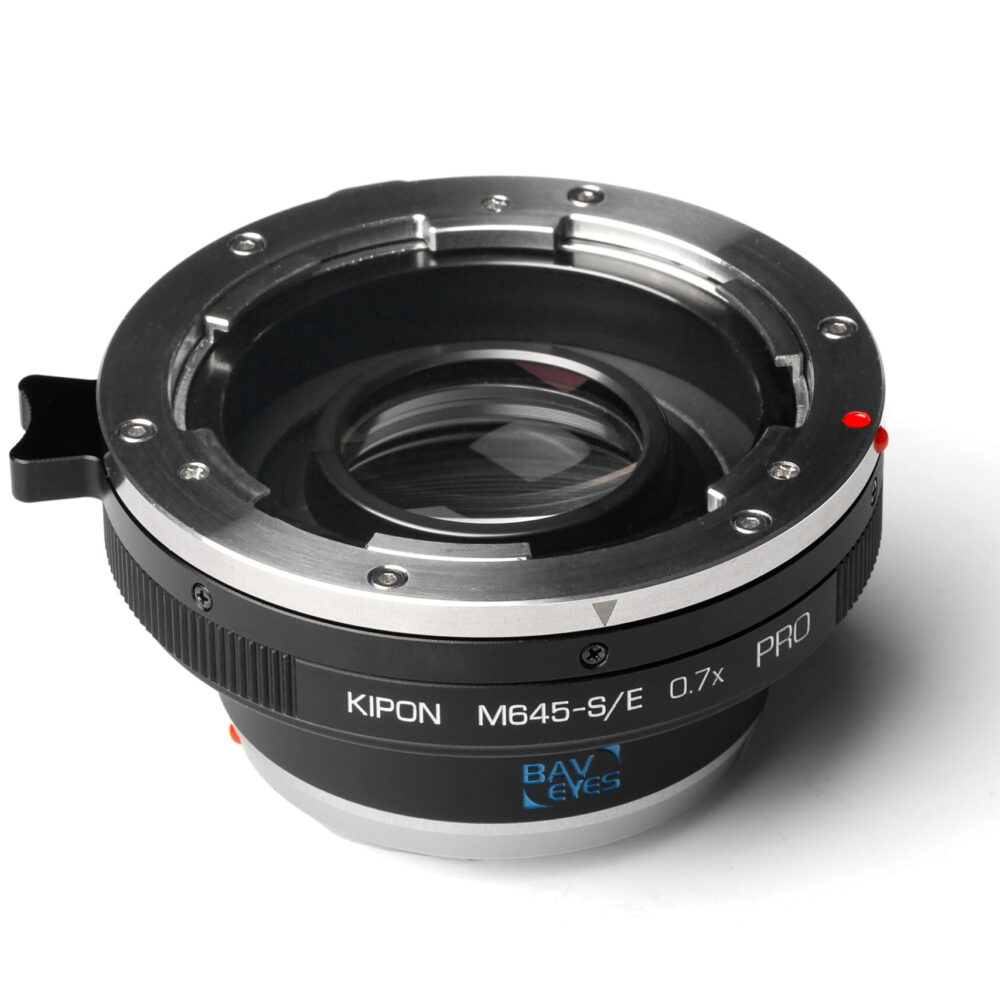 KIPON BAVEYES M645-S/E 0.7 pro lock style version adapter is designed for the Sony E mount camera, allowing Mamiya 645 mount lenses to be mounted onto Sony E mount camera bodies. The 0.7x optic adapter gets rid of crop factor, and increases the aperture. The lock style version designed speicially for video shooting, which makes your lenses more stable.