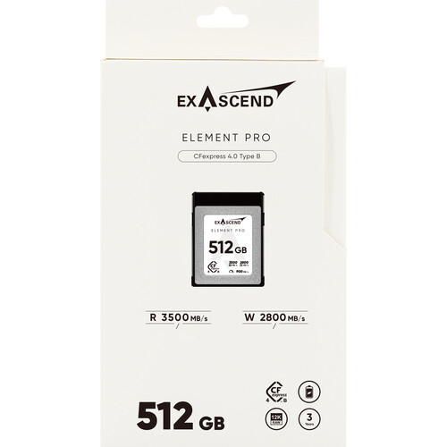 Engineered for professional content creators who demand flawless high-resolution video capture and editing, the 512GB Element Pro CFexpress 4.0 Type B Memory Card from Exascend is optimized to support 8K and 12K video recording at up to 120 fps without frame drops. Featuring a high-speed PCIe 4.0 / NVMe 1.4 interface, this CFexpress Type B card offers blazing-fast read speeds of up to 3500 MB/s and write speeds reaching 1400 MB/s. It also ensures consistent performance with sustained read speeds of 3300 MB/s and sustained write speeds of 450 MB/s. Built for durability, the card withstands harsh conditions including dust, extreme weather, impacts, x-rays, magnetic exposure, and operating temperatures between 10°F and 161°F.