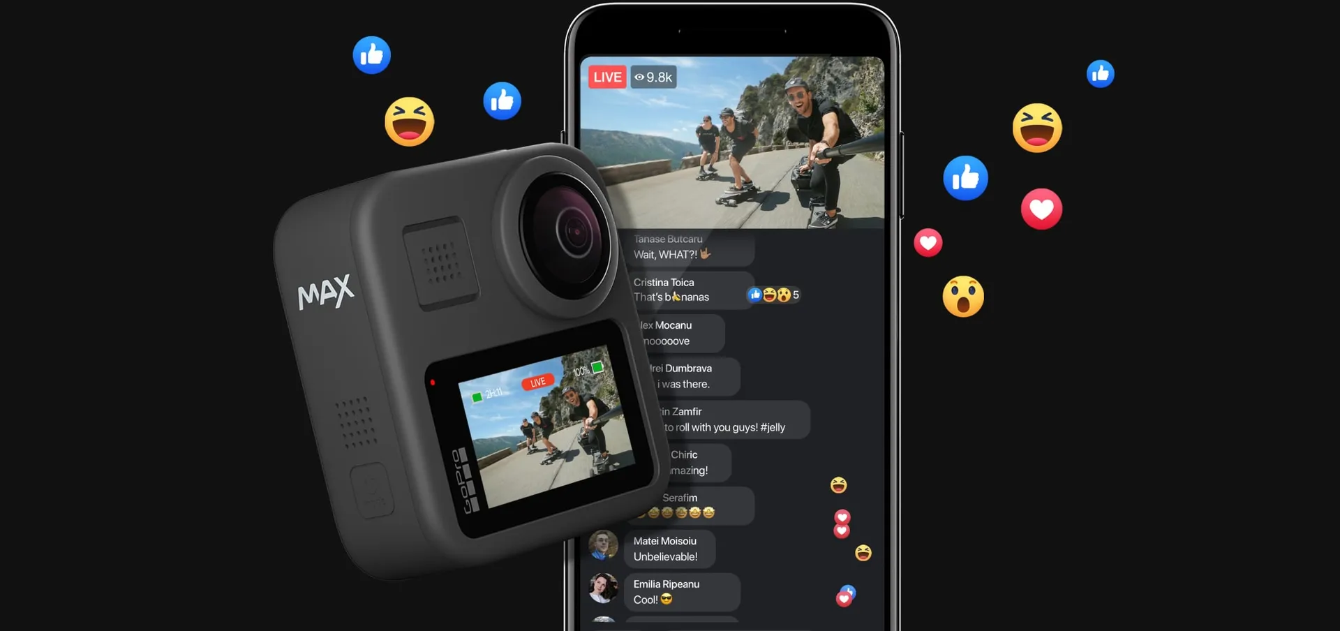 Capture panoramic photos and videos effortlessly with the GoPro MAX 360 Action Camera. Using its dual lenses, the MAX records everything within a 360° view, delivering up to 4992 x 2496 resolution video and 5760 x 2880 still images. Both photos and videos are automatically stitched in-camera, offering editing flexibility and seamless sharing. Additionally, the camera can switch to a single lens to capture traditional GoPro HERO-style wide-angle action shots when desired.
