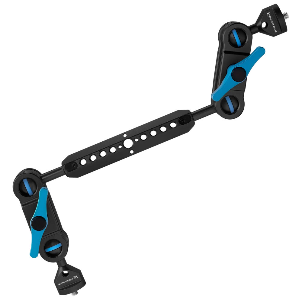 - Both ends of the arm feature a 1/4″-20 screw and two tightening thumbwheels for easy accessory mounting