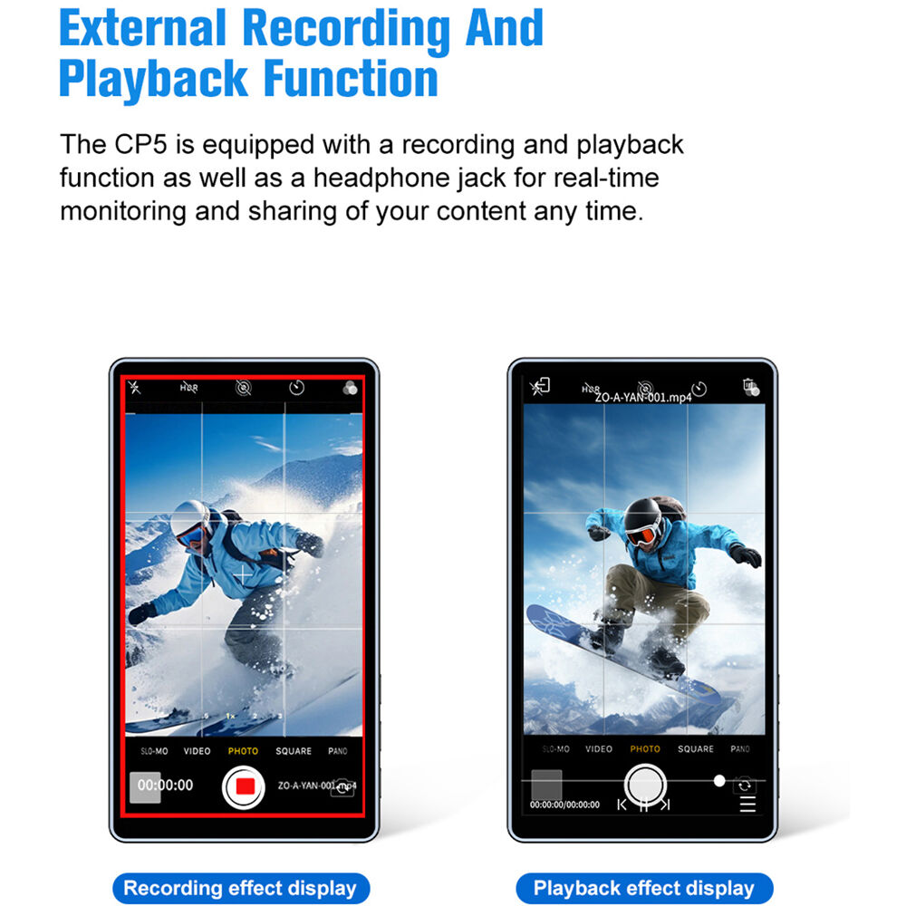 The Shimbol CP5 5″ Touchscreen Sync Rear Camera Smartphone Monitor is an innovative wireless monitoring device specifically designed for the back camera of your smartphone, making it an ideal tool for content creators. Featuring a full HD touchscreen display, the monitor enables seamless wireless transmission of images, shutter control, and record/playback capabilities. With dual-band Wi-Fi and Bluetooth technology, it offers connectivity with your device and the included Bluetooth remote from distances of up to 164 feet. For enhanced functionality, the monitor includes a 3.5mm headphone jack for audio monitoring and a USB-C port that fully recharges the built-in battery in just 2.5 hours. Additionally, footage can be recorded directly onto a microSD card for post-production editing, providing a versatile and efficient solution for creative projects.