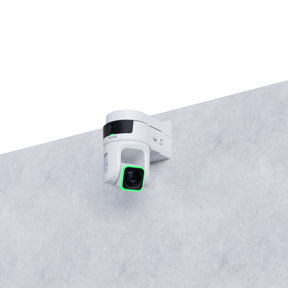 - AI tracking with machine learning, using dual-camera input for natural, human-like framing.