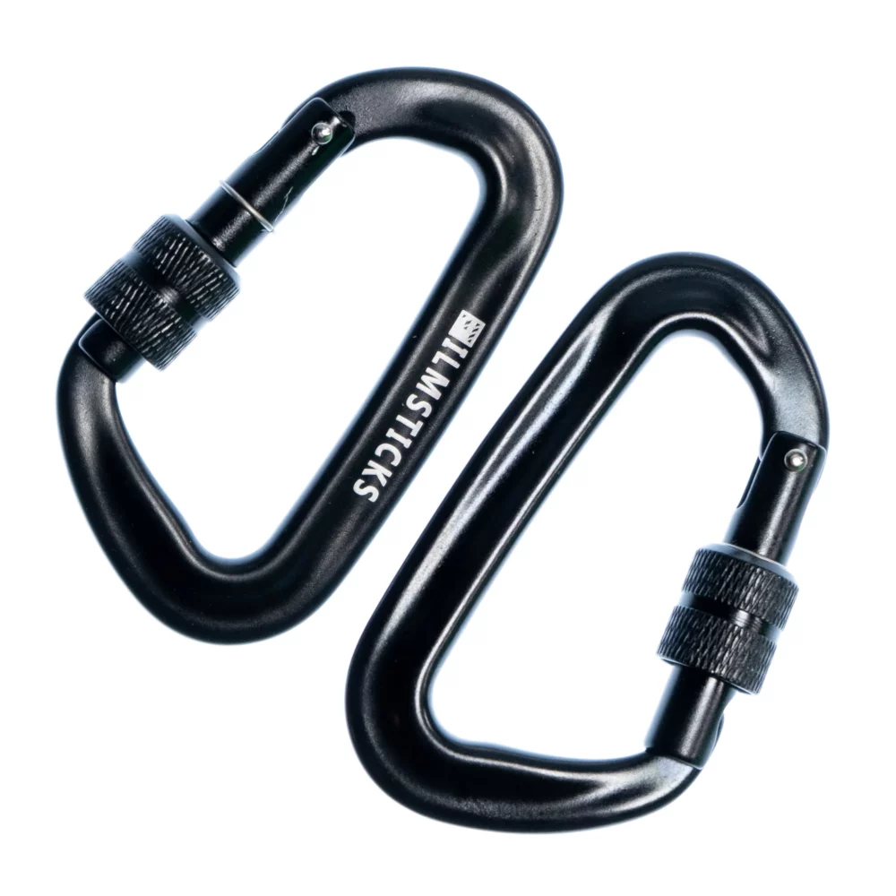 The screw-lock closure ensures enhanced security, preventing accidental opening while still allowing quick and easy access when needed. Finished in a sleek charcoal black coating, these carabiners provide a low-profile, professional aesthetic, perfect for film production, travel, and gear management.