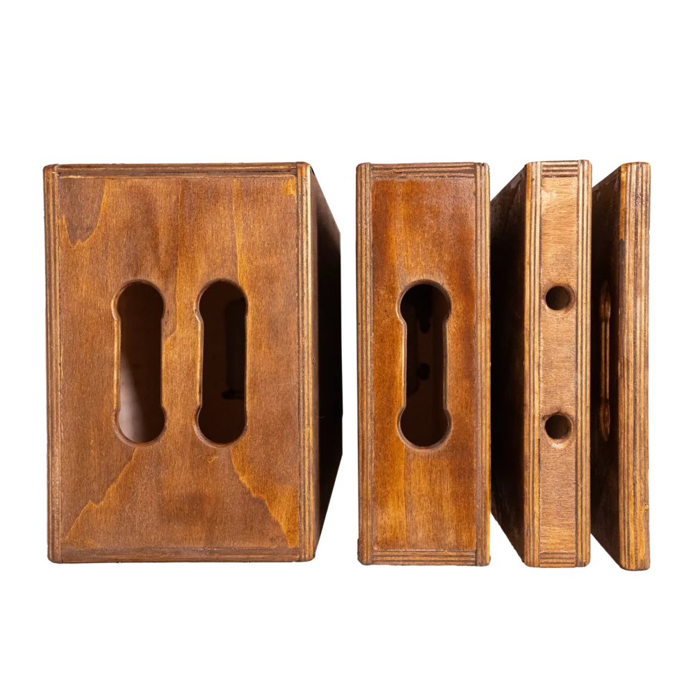 This ain’t your usual flimsy Apple Box Set. It’s a whole family of Apple Boxes built like tanks from thick Aspen plywood. This Heavy Duty Apple Box Set is screwed together with stainless steel screws – no wimpy nails here – and reinforced with a special composite glue on all sides.