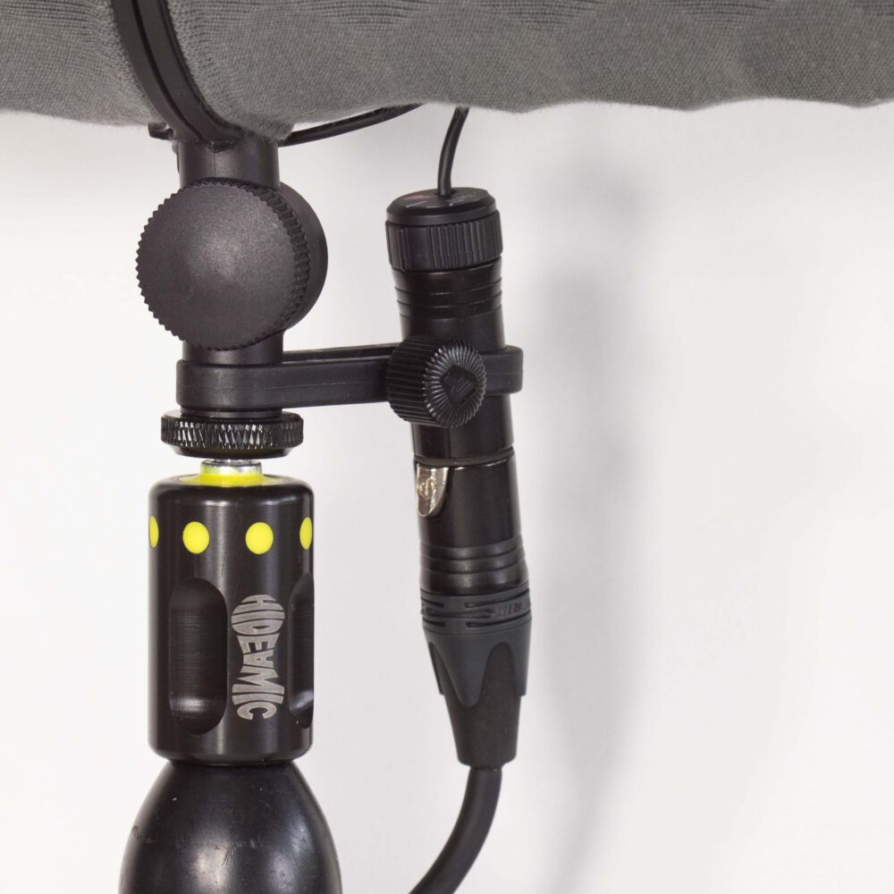 The Hide-a-mic Re:pose creates an acoustic barrier and reduces the amount of low frequencies traveling from your microphone stand, boom or car rig to your microphone suspension. Hide-a-mic Re:pose helps to make your recordings quieter and with less than 50 grams (1.7 oz) hardly any weight is added to your microphone rig.