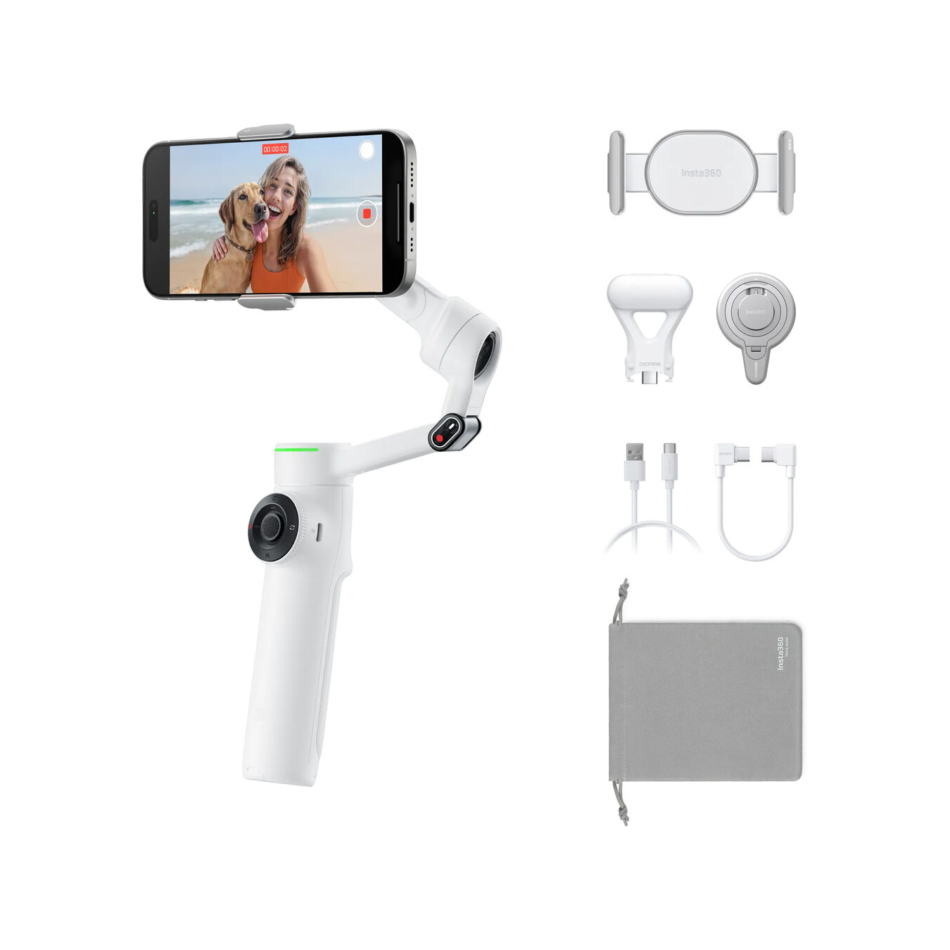 The updated gray Flow 2 Pro Smartphone Gimbal Stabilizer from Insta360 allows you to capture and stabilize smartphone footage in an all-in-one form factor with 1-tap pairing, native iOS tracking, a 10-hour runtime, and an integrated ring light to display when tracking is enabled. The included magnetic phone clamp secures smartphones 2.5 to 3.3″ wide to the gimbal. Thanks to the gimbal’s built-in 8.3″ selfie stick and tripod legs, there’s no need to bring additional expansion mounts.