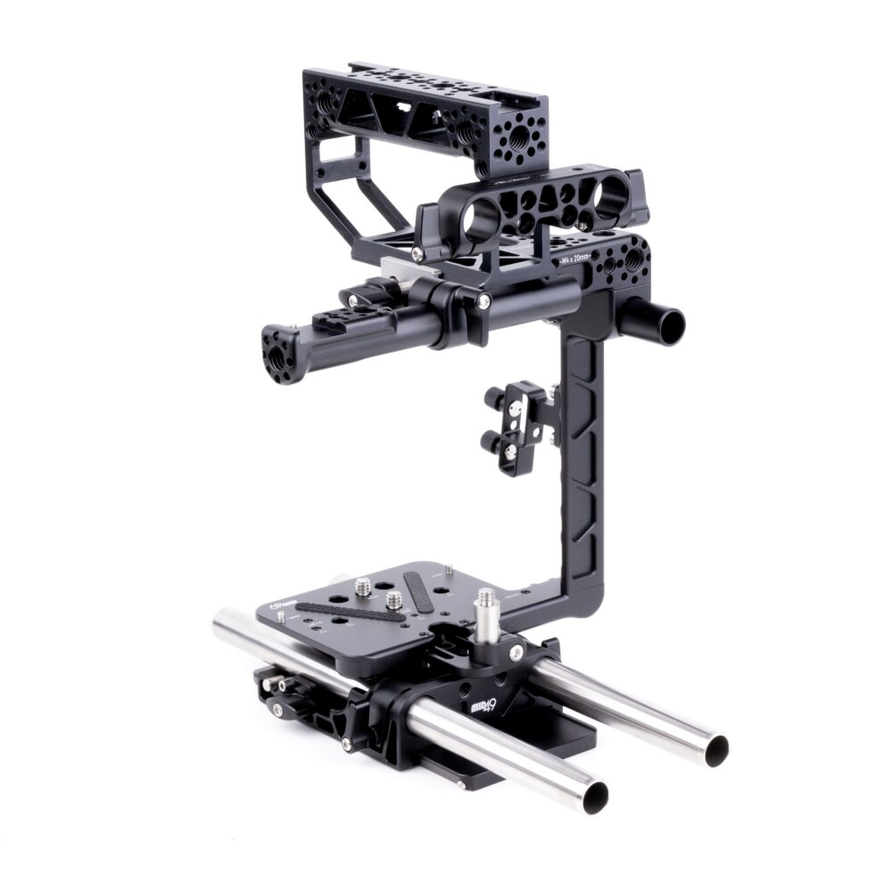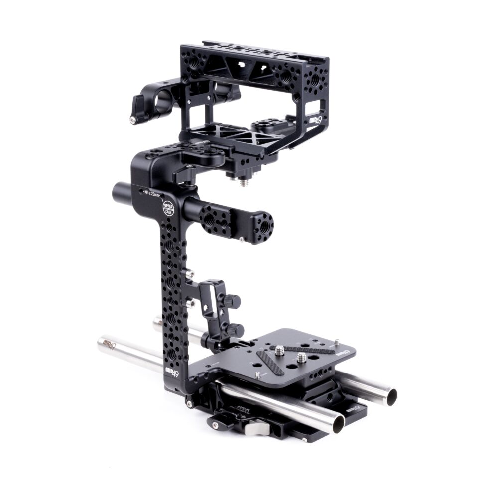 The MID49 Mid Kit for Cinema Camera 6K is a comprehensive accessory bundle designed for use with the Cinema Camera 6K. It features an Upper Cage that securely fits the camera, along with a Baseline 15mm LW Baseplate that offers an Arca-type camera dovetail interface on the top and an ARRI standard dovetail interface on the bottom. The kit also includes an Arca-type Top Handle, which is a sliding camera handle with 1/4″-20, 3/8″-16 threaded holes with ARRI anti-twist divots, M4 x 20mm threads, and two hot shoe mounts. The formfitting Upper Cage includes both 1/4″-20 and 3/8″-16 threads, along with ARRI anti-twist divots for added stability. Additionally, the Mid Kit comes with an audio breakout cable, a front lens support, and two 9″ stainless steel rods for robust support.