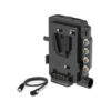 Power Distribution Box DB-4 (Canon C70, V-Mount) attaches to 15mm LW rods with a hinge pivot and provides intelligent power distribution with D-Taps, 5V USB-C PD, 3pin Fischers, and 2pin LEMO compatible connectors. Removable REMOTE LANC cable enables remote start/stop capability using 3pin Fischer devices.