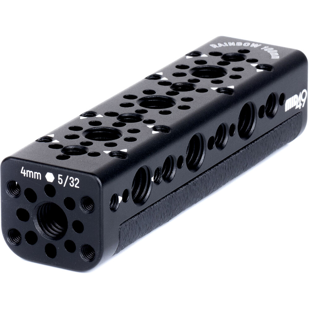1/4-20 and 3/8-16 threaded holes with ARRI locating pins and M4x20mm holes in many places.