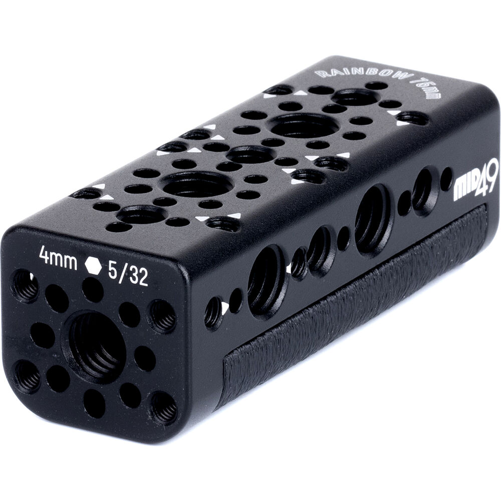 1/4-20 and 3/8-16 threaded holes with ARRI locating pins and M4x20mm holes in many places.