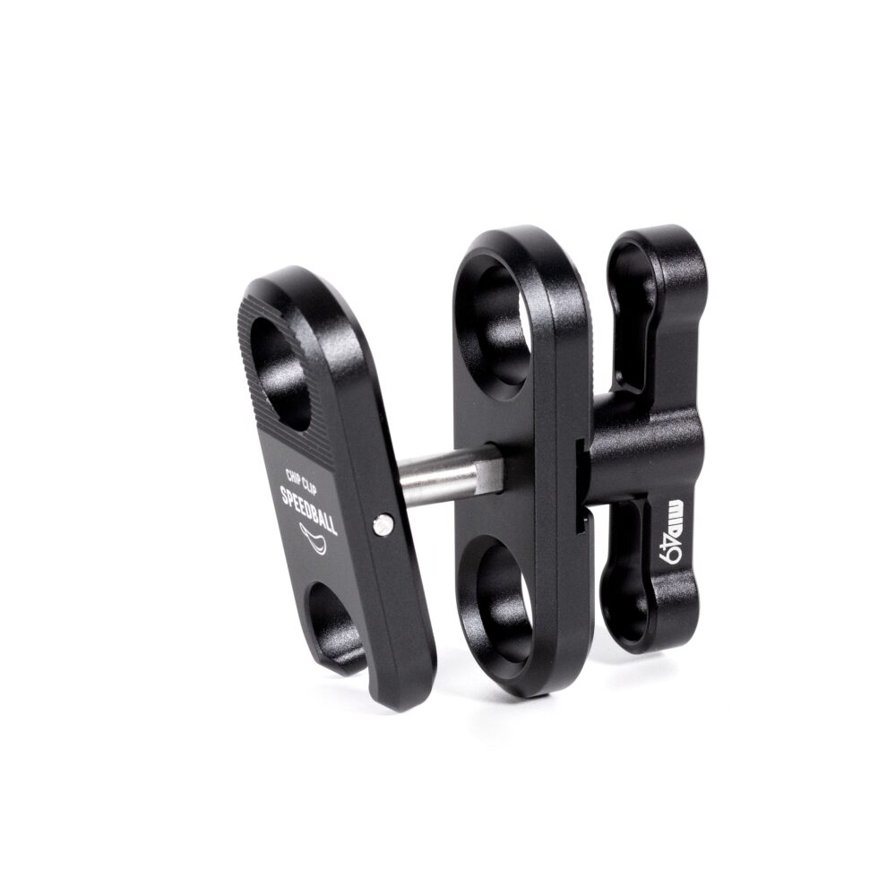 The MID49 Universal Speedball Clamp is compatible with 1″ speedball mounting systems commonly used in accessory arms from Mid49, Wooden Camera, Ultralight Control Systems, and other brands. It features a “Chip Clip” clamp design with a spring-loaded T-Bar for easy tightening or loosening. The spring mechanism allows you to adjust the T-Bar for optimal torque, enabling you to secure or release the clamp without having to rotate the T-Bar through its full 360° range. All parts of the clamp are permanently secured, so there’s no risk of losing components when it’s not in use.