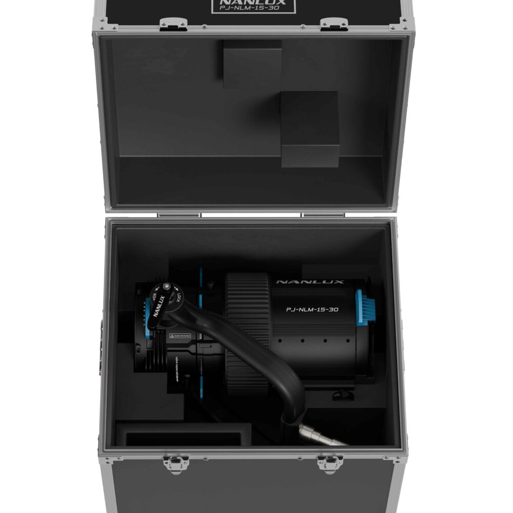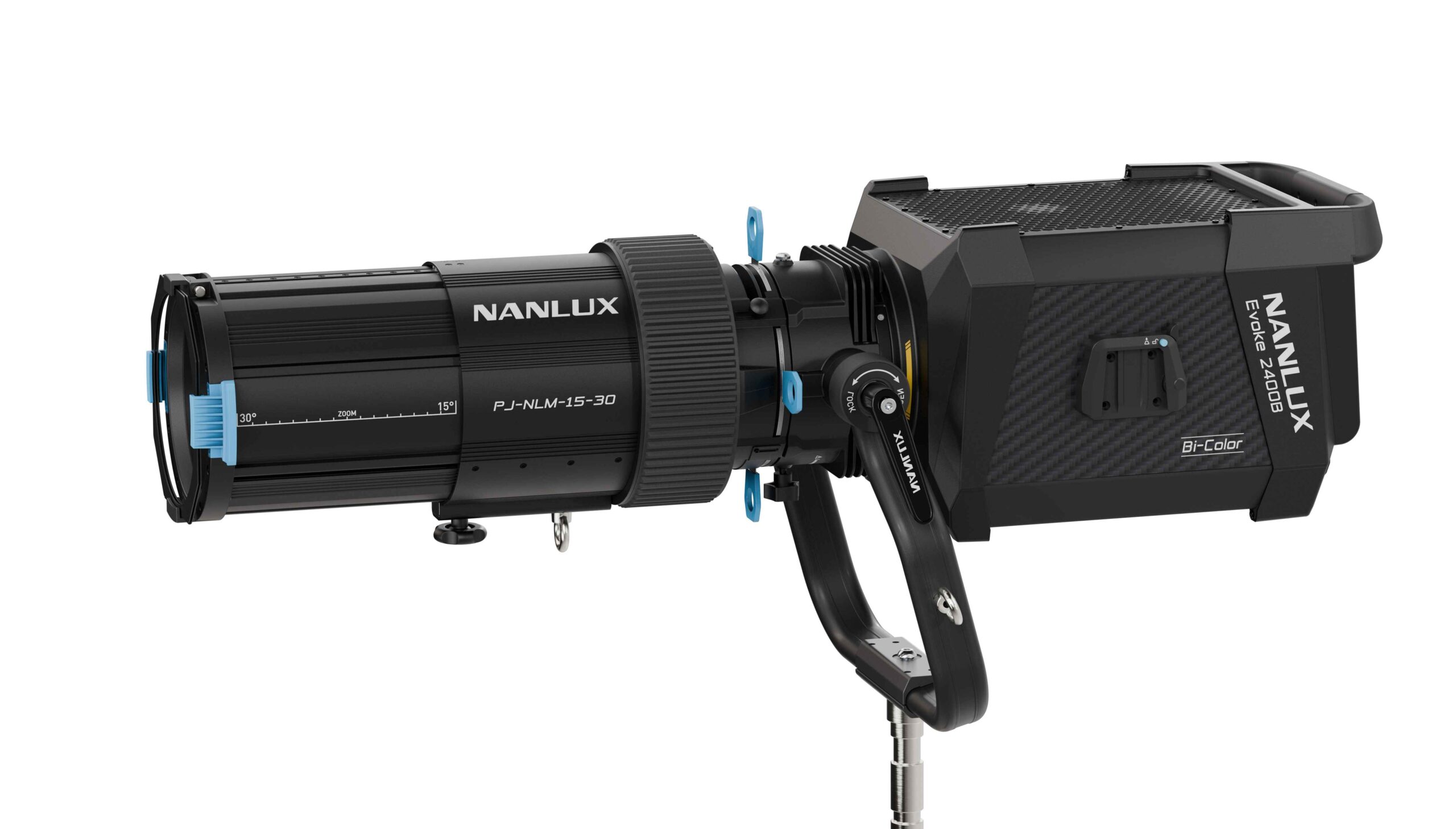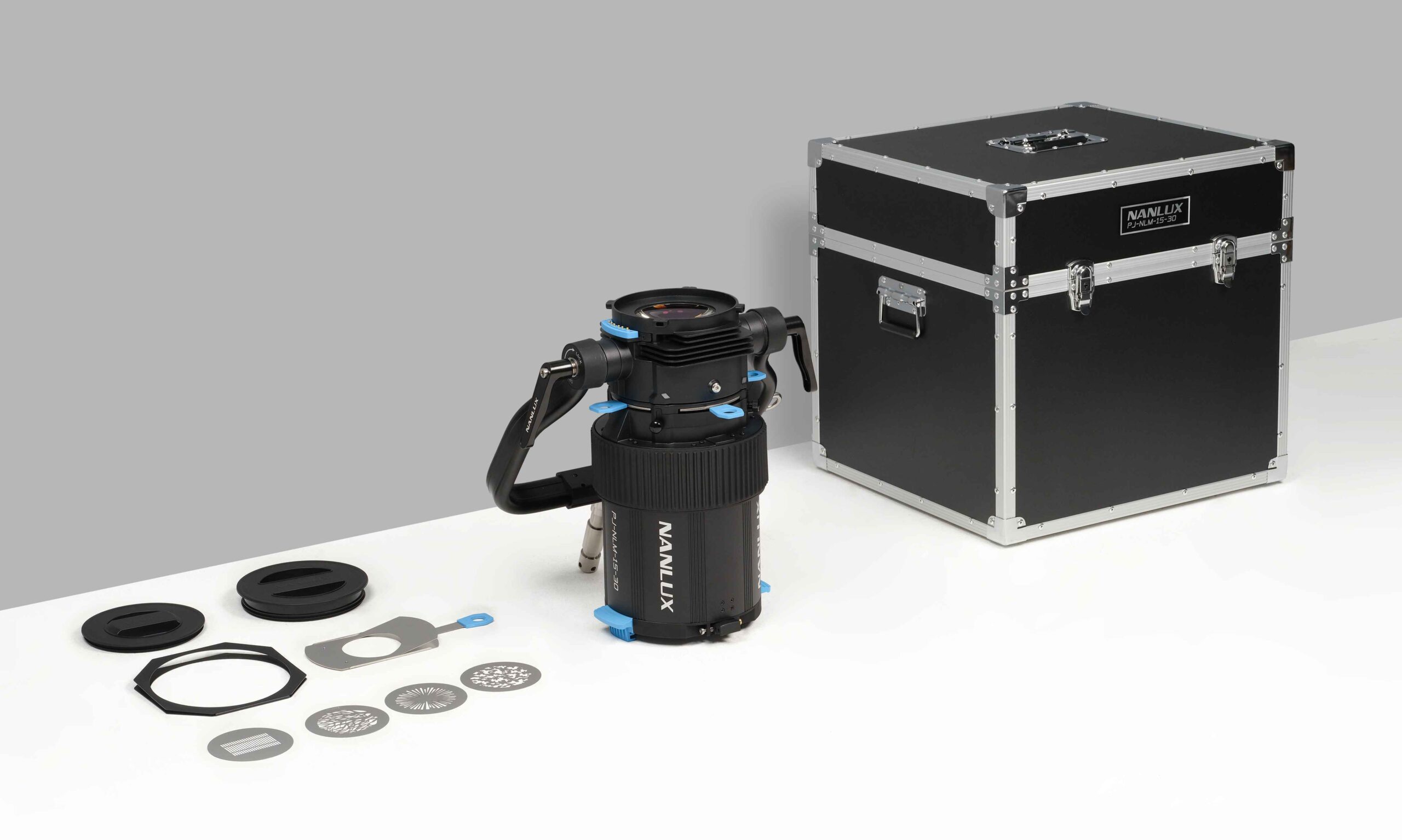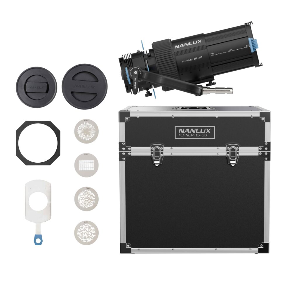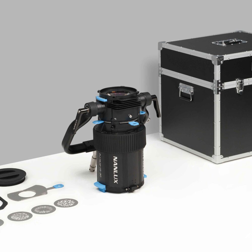 Enhance your productions with the versatile NL Mount Projection Attachment for the Nanlux Evoke Series. Designed for zoom and focus compatibility, this attachment provides exceptional light-shaping control. Whether you need to project a background image or boost the output of your Evoke 900C, 1200, 1200B, or 2400B fixtures, this tool delivers precision and flexibility. The smooth zoom ring allows for fine-tuned focusing, while cutting shutters and an optional iris help shape the light to your needs. A supplied gobo holder lets you incorporate one of the four included gobos, creating striking patterns. Additionally, a gel frame is provided for adding optional color gels. Built for durability, the projection attachment comes in a robust aluminum flight case, ensuring safe transport between sets.