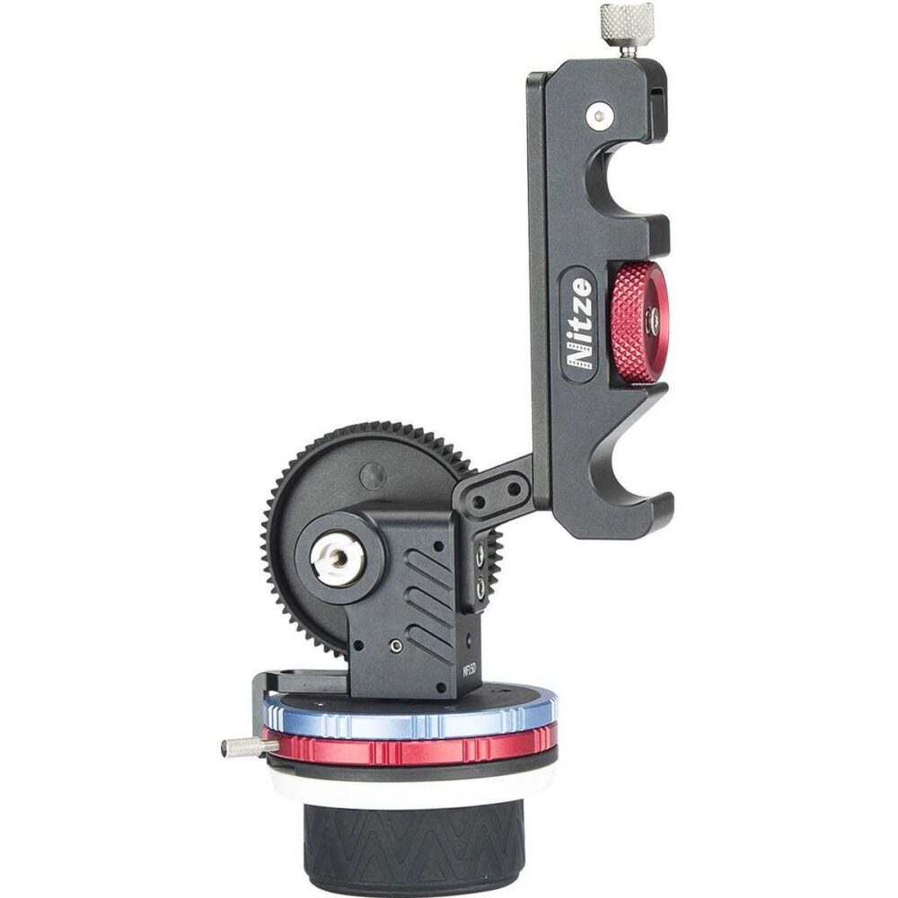 Adjustable Rail: Nitze MF15D follow focus features an adjustable rail above the 15mm rod clamp. It can be adjusted within 50 mm to fit your desired lens by twisting the red thumbscrew at the bottom.