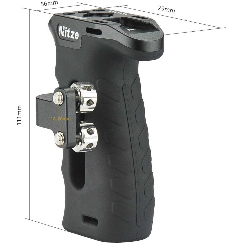 - Mounting Points: One built-in cold shoe, six 1/4” threaded holes and one 3/8” ARRI locating holes on the top of the side handle for accessories expansion; The strap slots can be used to mount Nitze N58-R2 hand strap