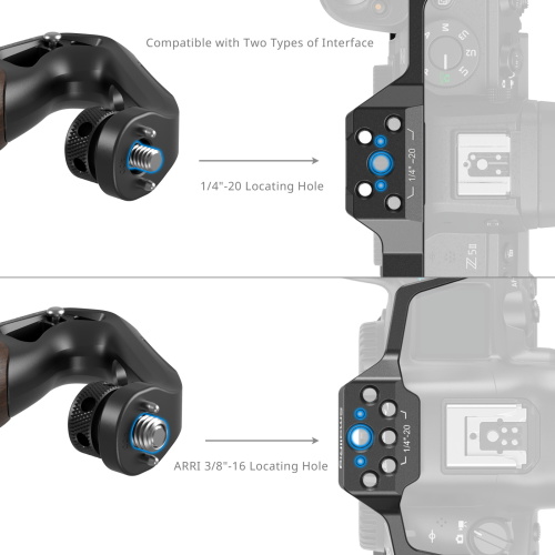 Easily capture handheld and low-angle shots with the Wooden Top Handle featuring 1/4″-20 & 3/8″-16 Locating Screws from SmallRig. Built for improved comfort, adaptability, and professional rigging, this durable handle combines aluminum alloy and sandalwood construction. It mounts securely to a wide range of compatible gear using standard 1/4″-20 or 3/8″-16 locating holes. Perfect for fast-paced and run-and-gun shooting styles, the ergonomic grip supports payloads up to 15kg, seamlessly adjusting to meet your filming demands.