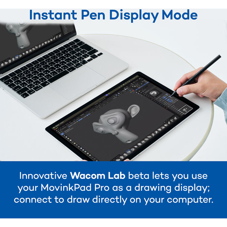This exclusive Wacom Lab beta feature can transform your MovinkPad Pro into a wired or wireless pen display for Windows or Mac, enhancing productivity and flexibility for creative tasks, such as drawing, designing, and document editing.