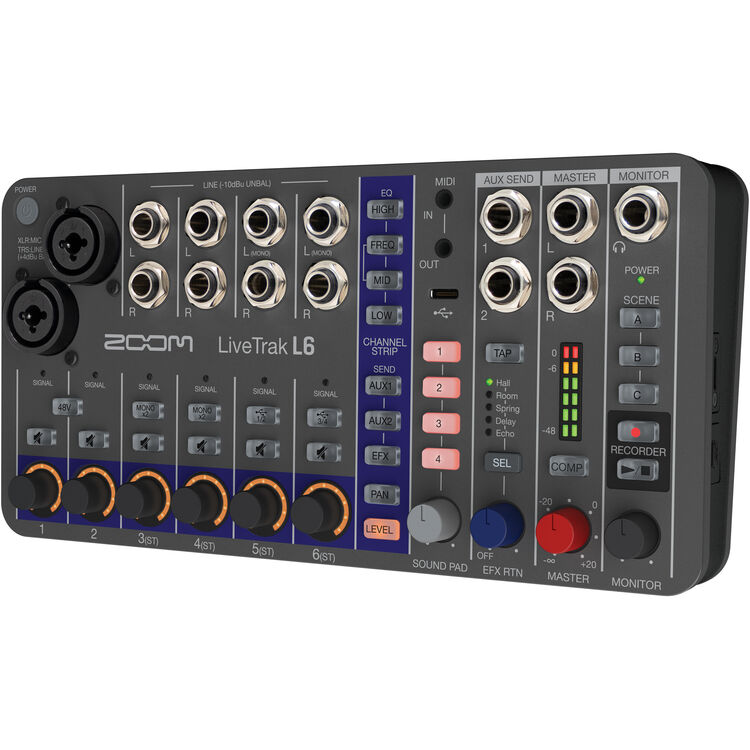 - Zoom LiveTrak L-6 Portable 6-Channel Digital Mixer and Multitrack Recorder