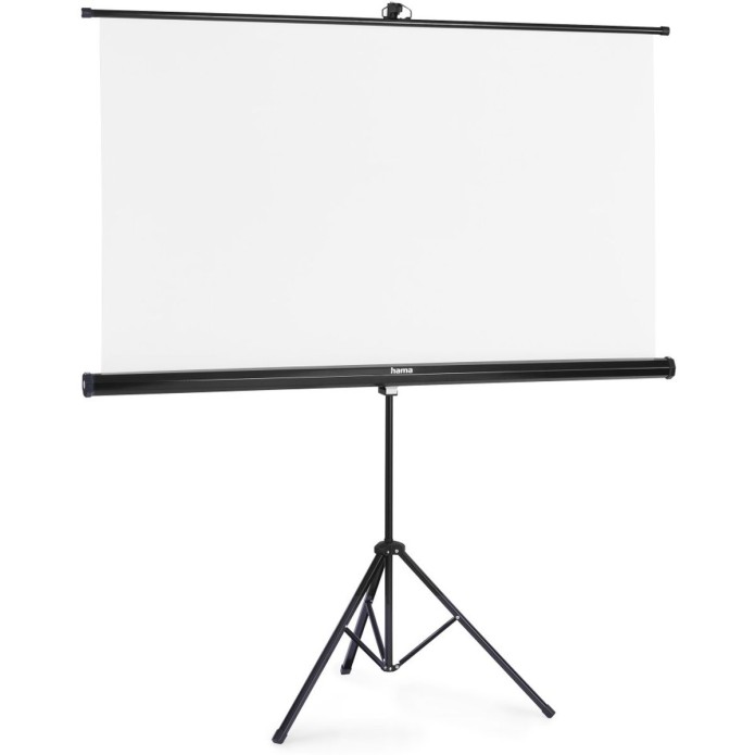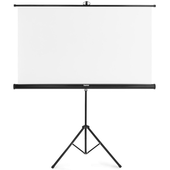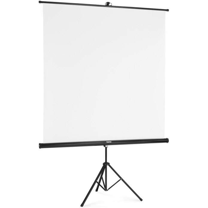 - The tripod projection screen with quick-release clip can be removed from the tripod and hung up on its own