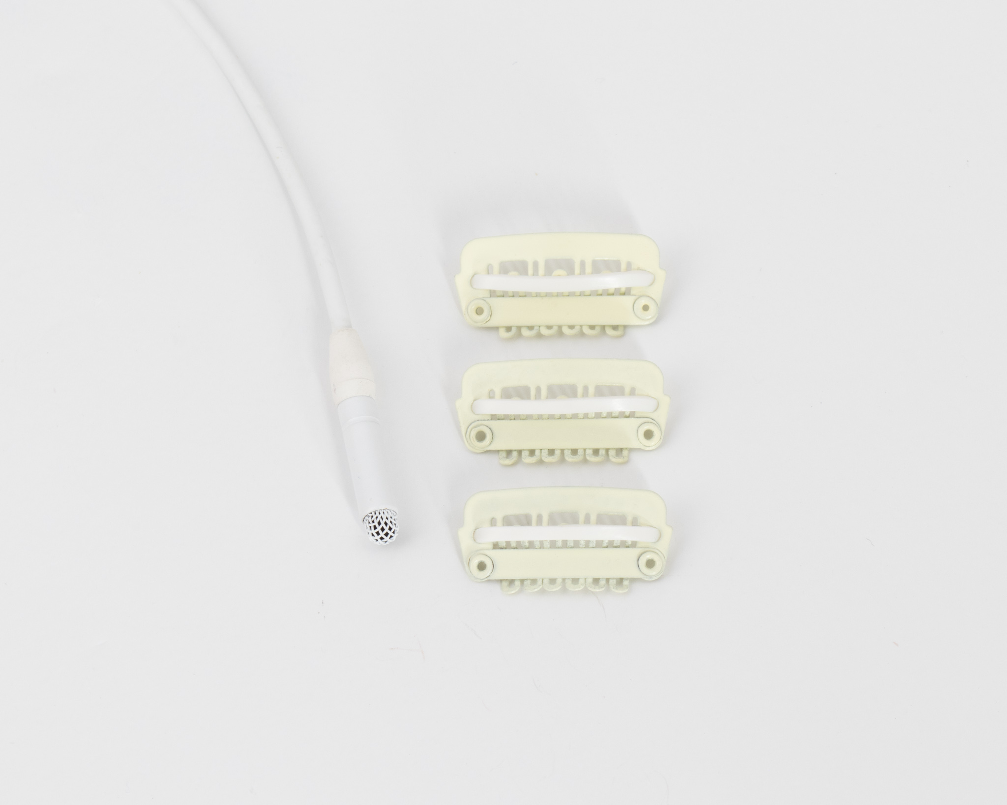 • For the safe and inconspicuous placement of clip-on microphones in hair or in a wig