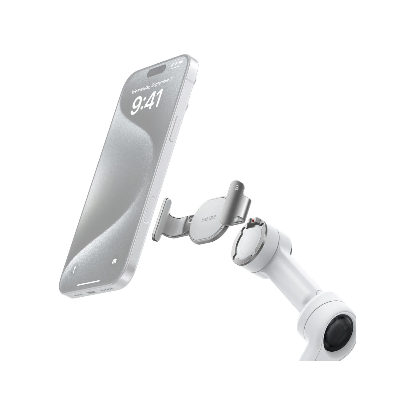 The Insta360 Magnetic Phone Clamp is designed to secure your smartphone to the Flow 2 or Flow 2 Pro gimbal for hassle-free shooting. The clamp can accommodate phones 2.5 to 3.3″ wide. Its magnetic interface helps you easily switch between handheld and stabilized shooting.