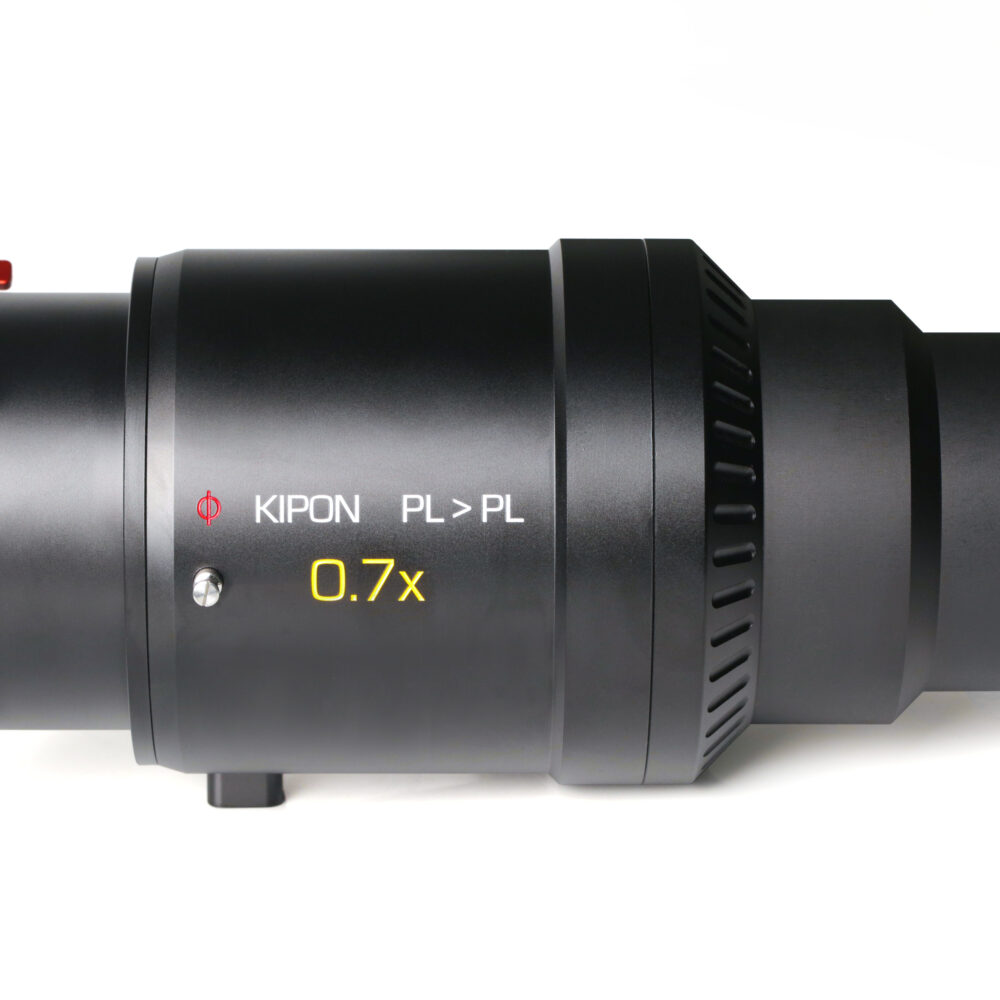 The relay design of the KIPON 0.7x PL > PL Adapter cause a 180° rotation of the image before it is projected onto the camera sensor. This can be easily compensated by flipping the image in the camera settings to properly rotate the image and ensure natural orientation.