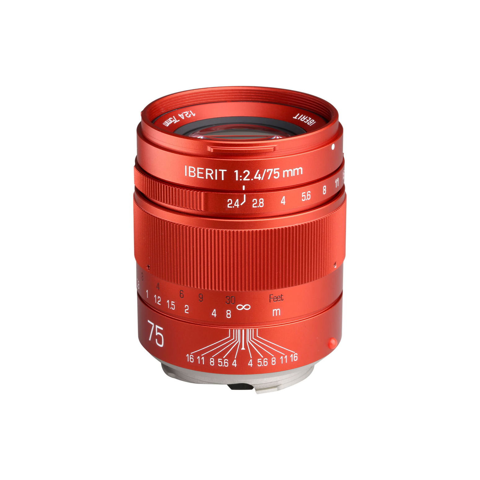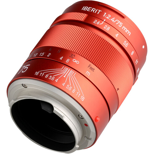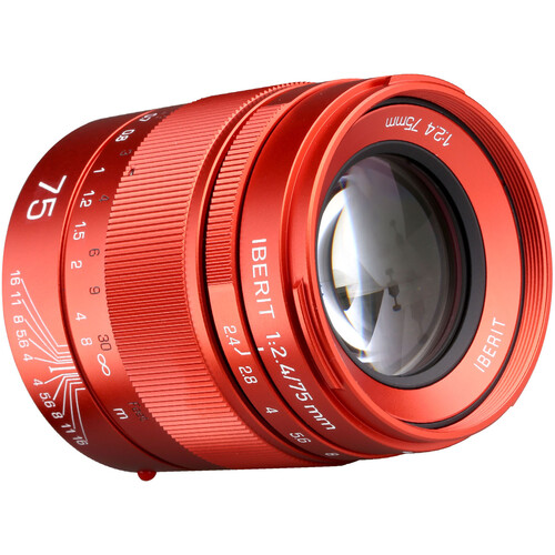 Offering a portrait-length field of view, the red Iberit 75mm f/2.4 from Kipon is a sleek, compact lens designed for Leica M-mount rangefinder cameras. It uses a simple five elements in five groups optical design to render imagery with a classic quality, and its precise manual focus control affords working with subjects as close as 2.3′ away. The all-metal construction realizes a rugged physical design, and the lens barrel’s exterior also incorporates both depth of field and focusing distance scales for more accurate focus control.