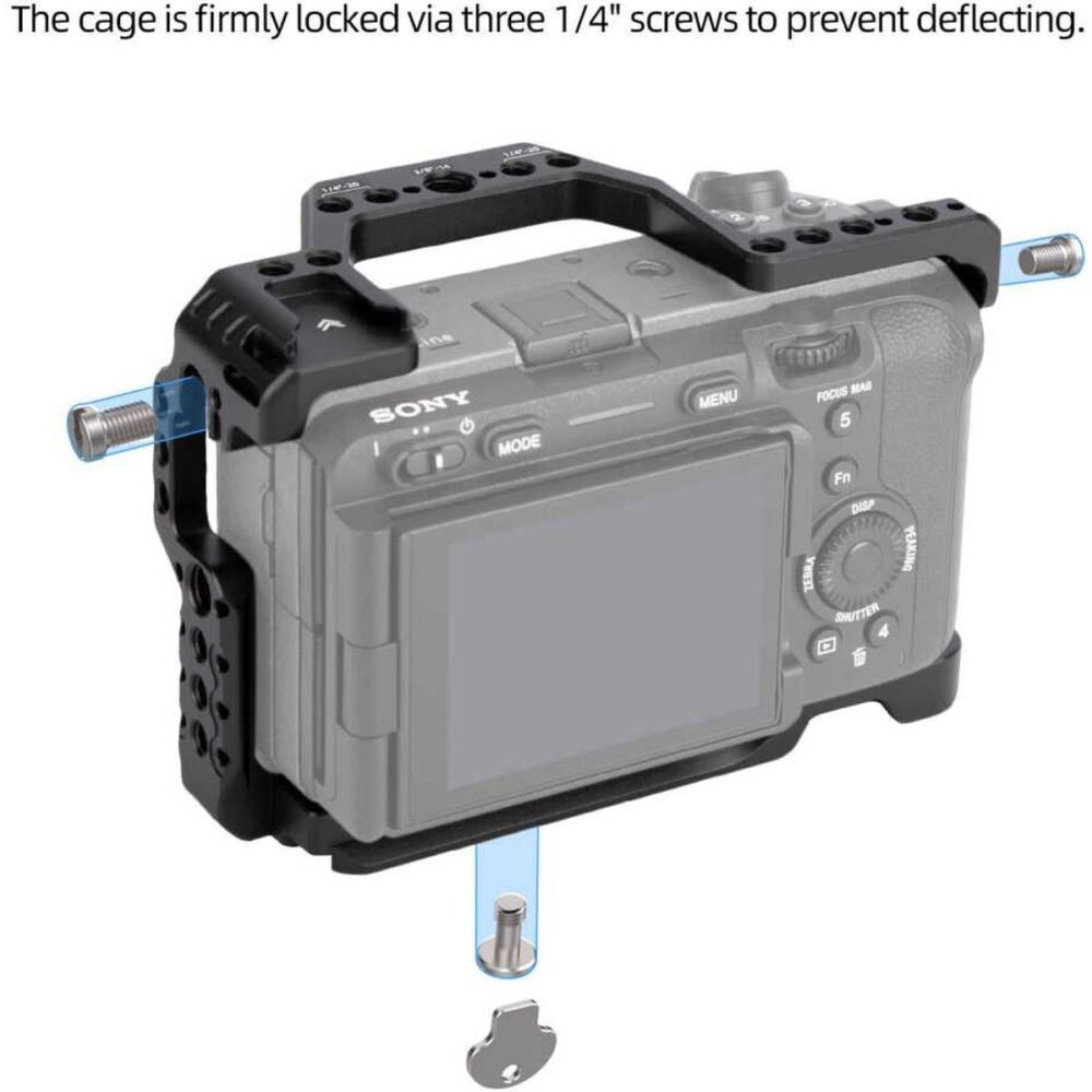 - High Compatibility: Nitze T-S11A cage is an one-piece full cage for Sony FX30 / FX3 camera. It locks with three 1/4” screws through the bottom and sides of the cage to keep the camera from twisting.